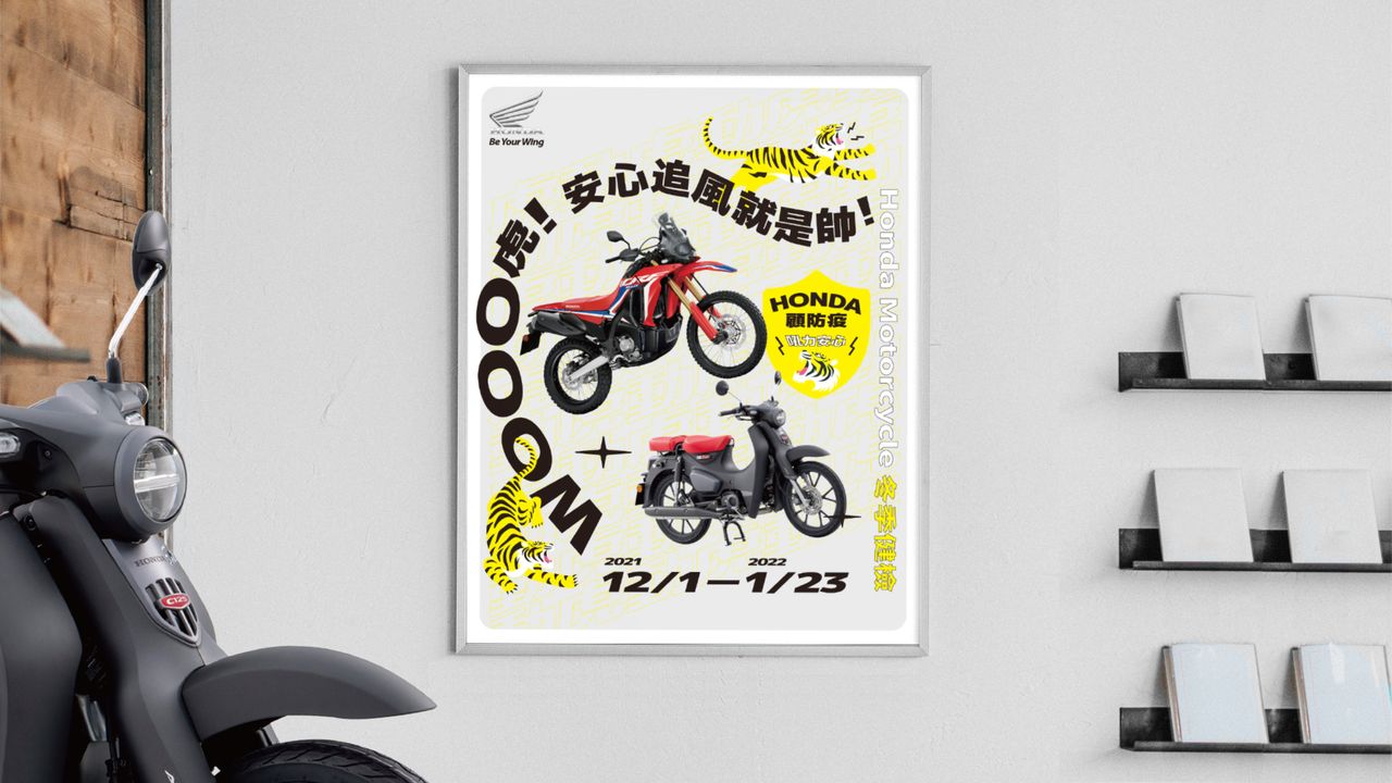 以顯眼且新潮的視覺捕捉消費者的眼球,翻玩幽默感的狀聲詞,扭轉健檢生硬的印象。想要像老虎一樣充滿速度感,熱血帥氣的奔馳,痛快的仰天長嘯”WOOOO虎!” ,要記得定期回廠健檢,才能夠更安心地去追風追帥。