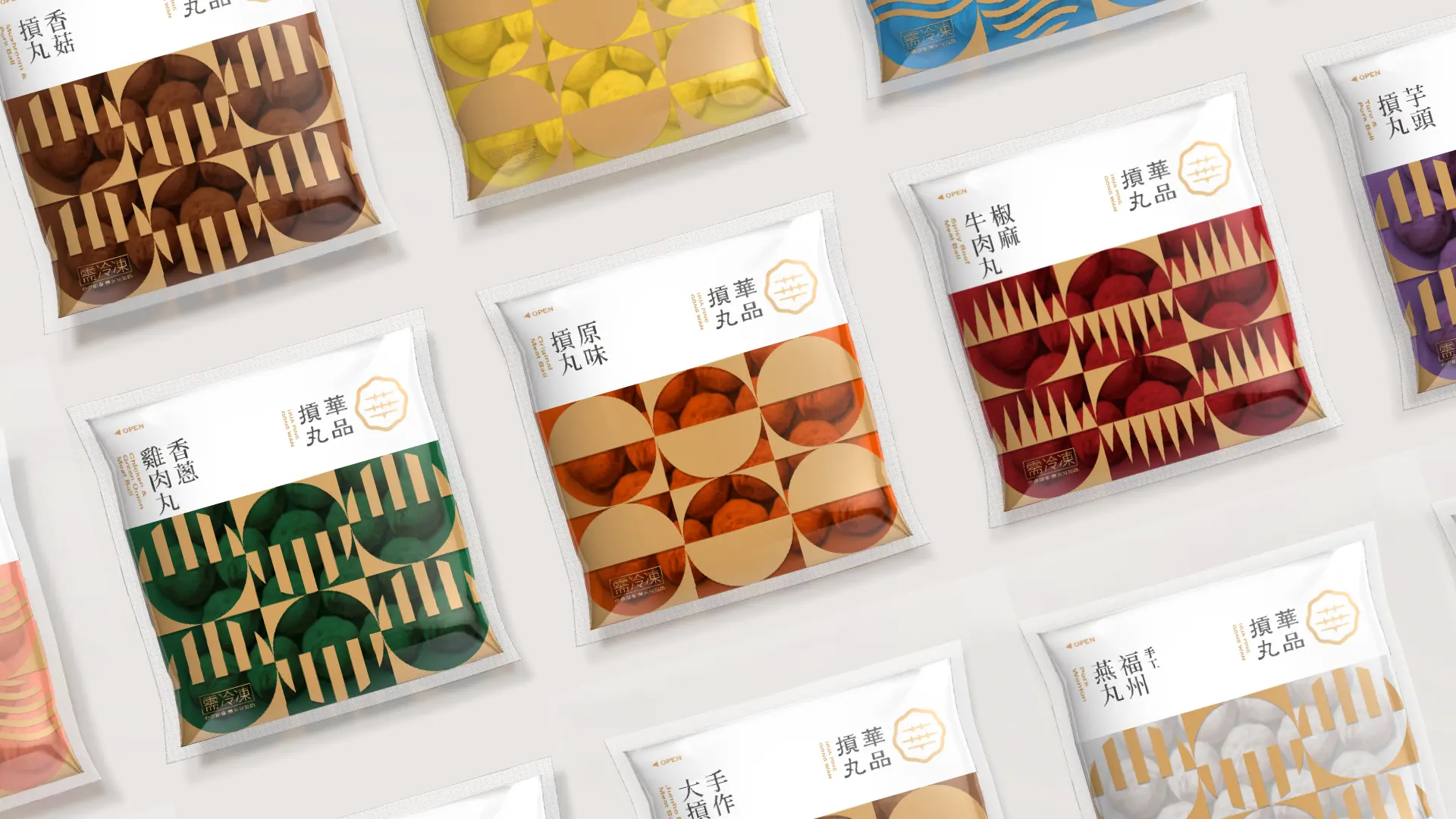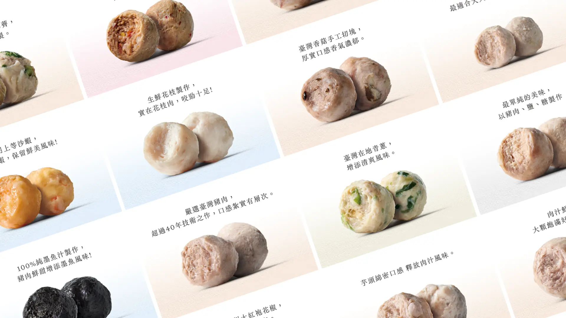 華品摃丸系列產品的溝通風格以產品外觀形狀結合風味特色,規劃風味圖型輔以顏色搭配為主軸,讓視覺與摃丸口味有高度記憶點及連結性。丸康系列則一筆到底勾勒出豬肉及食材樣貌,傳達丸康食材單純的產品價值。