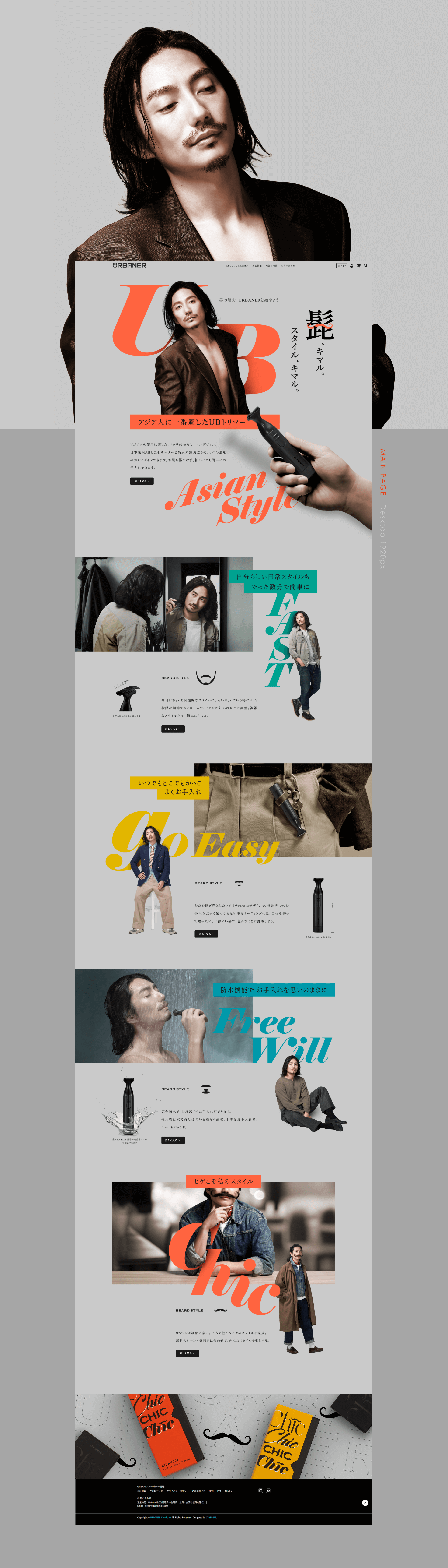融入生活時尚的品牌官網 在品牌形象網站的規劃之前,我們整合核心族群的日常及打扮喜好,重新建構了屬於奧本鬍子型男自信,優雅,個性的形象,並結合了產品本身的特色,以鬍子型男一日生活為企劃概念,讓產品特色自然融入型男的日常生活,如輕巧便利=隨時隨地輕鬆修鬍,時尚造型=隨身配件帶著走,細節修整=打造各式個性鬍子等,以雜誌的排版手法,讓消費者在瀏覽官網時彷彿閱讀時尚雜誌,以此建立與消費者間的共鳴。 鮮明及低調配色的包裝搭配,傳達品牌個性時尚與專業兼具的價值 產品包裝規劃方面,我們以鮮明的外盒配色來傳達TA不受拘束具個性的時尚魅力,並從使用者體驗的角度從外盒包材絲絨滑順手感感受修容後的滑順感,輔以精練質感的黑色內盒傳達時尚帥氣源自於專業的態度,隨盒附贈的香氛擦拭巾更是展現時尚型男對於愛惜自身用品的魅力及細節。