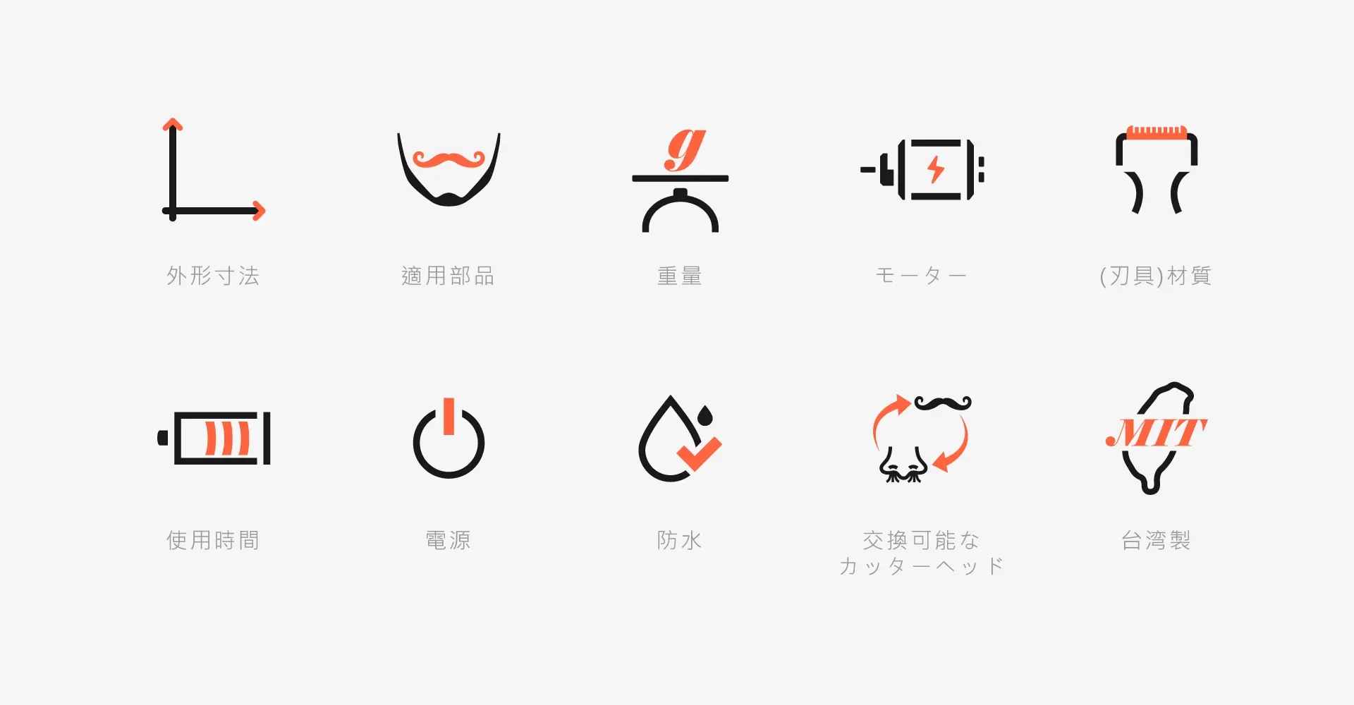 以簡約俐落的圖標來呈現產品規格,品牌色的加入讓呆板的圖標更加帥氣